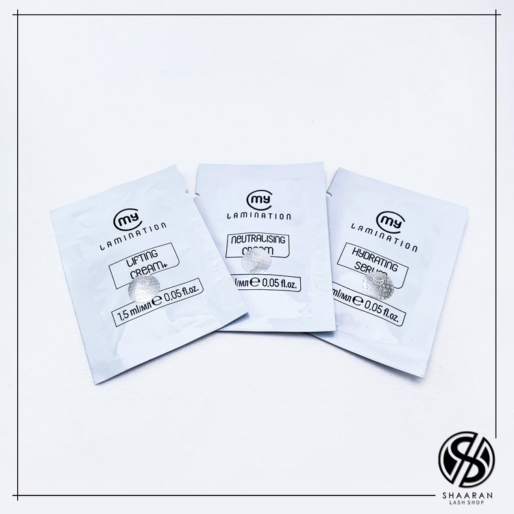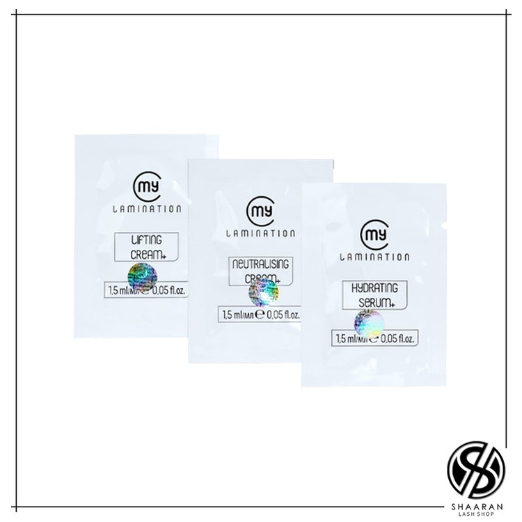 مواد مای لمینیشن (My Lamination) شامل محصولاتی تخصصی برای لیفت و لمینیت مژه و ابرو است که با هدف بهبود ظاهر طبیعی مژهها و ابروها طراحی شدهاند. این مواد به ویژه برای تقویت، حجمدهی و حالت دادن به مژهها و ابروها بدون نیاز به استفاده از مژههای مصنوعی یا محصولات دیگر استفاده میشوند. محصولات موجود در تصویر شامل کرم لیفت، کرم خنثیکننده و سرم آبرسان هستند که مراحل مختلف لیفت و لمینیت را پوشش میدهند. در ادامه توضیح کامل هر یک از این مواد ارائه شده است: