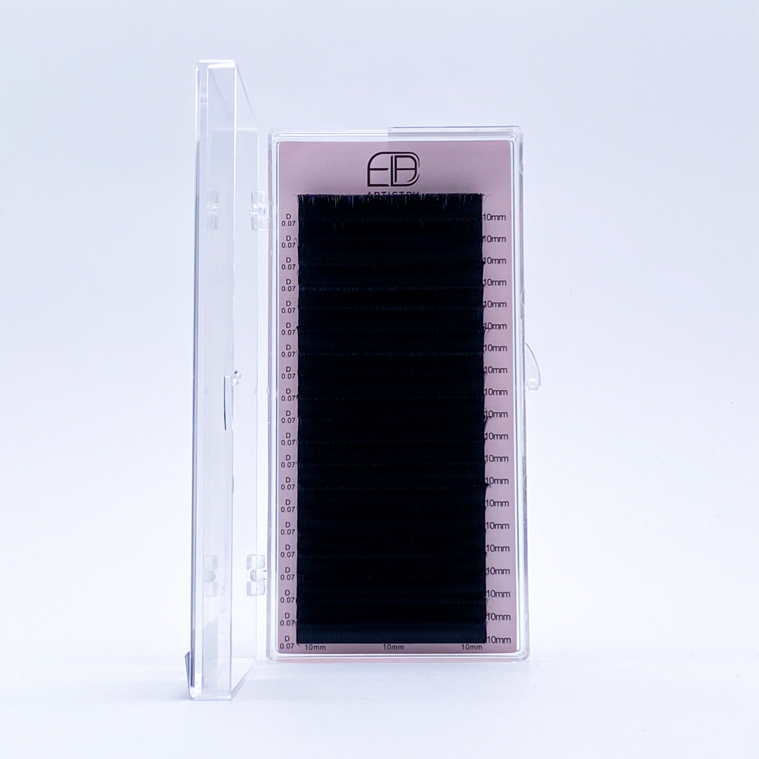 پالت مژه اکستنشن الا دارای مژههای مشکی و مات است که جلوهای طبیعی و شیک به مژهها میدهد. رنگ مشکی مات این مژهها به چشمان مشتریان عمق بیشتری میبخشد و بدون درخشش اضافی، ظاهری کلاسیک و جذاب ایجاد میکند. این ویژگی باعث میشود که مژهها طبیعیتر به نظر برسند و با انواع سبکهای آرایش سازگار باشند. ترکیب این رنگ با ضخامتها و فرهای متنوع، پالت الا را به انتخابی ایدهآل برای اکستنشنکارانی که به دنبال ظاهری طبیعی و حرفهای هستند، تبدیل میکند.